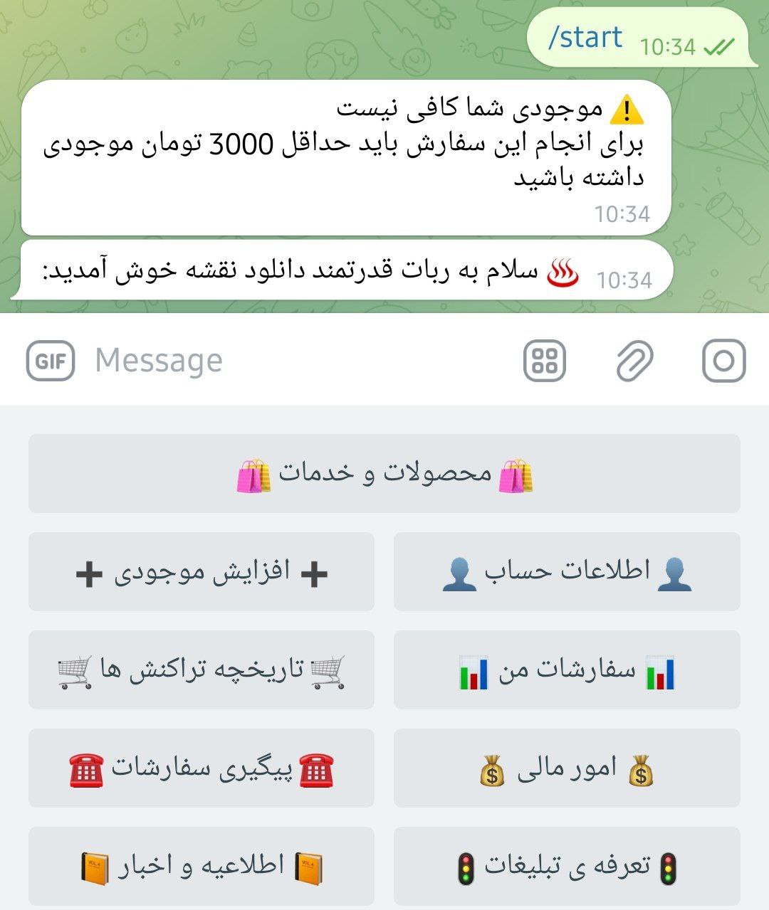 سلام وقت شما بخیر یه پروژه بات تلگرام داشتم میخواستم یه حدود قیمت کلی بهم بدید که اصلا چجوری هست اینا من یه بات میخوام موارد داخل عکس رو داشته باشه کیف پول درگاه پرداخت اطلاعات حساب و یسری ایتم هم اگه خودتون پیشنهاد داشته باشید
