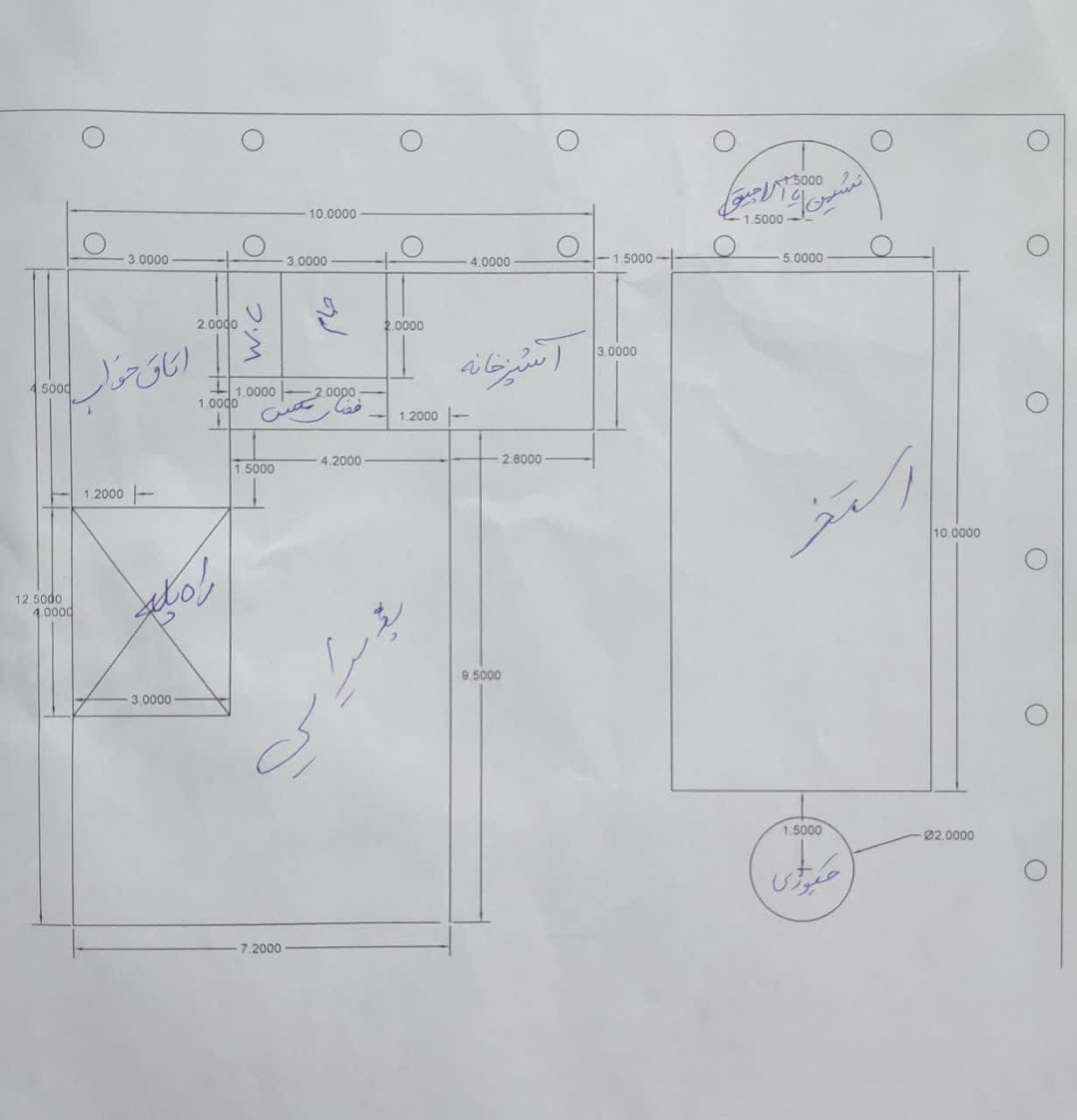 طراحی و نقشه دو بعدی و سه بعدی باغ ویلا به گونه ای که پلان های اتاق خواب آشپز خانه و پذیرایی محل در و پنجره ها نمایش داده شوند.
